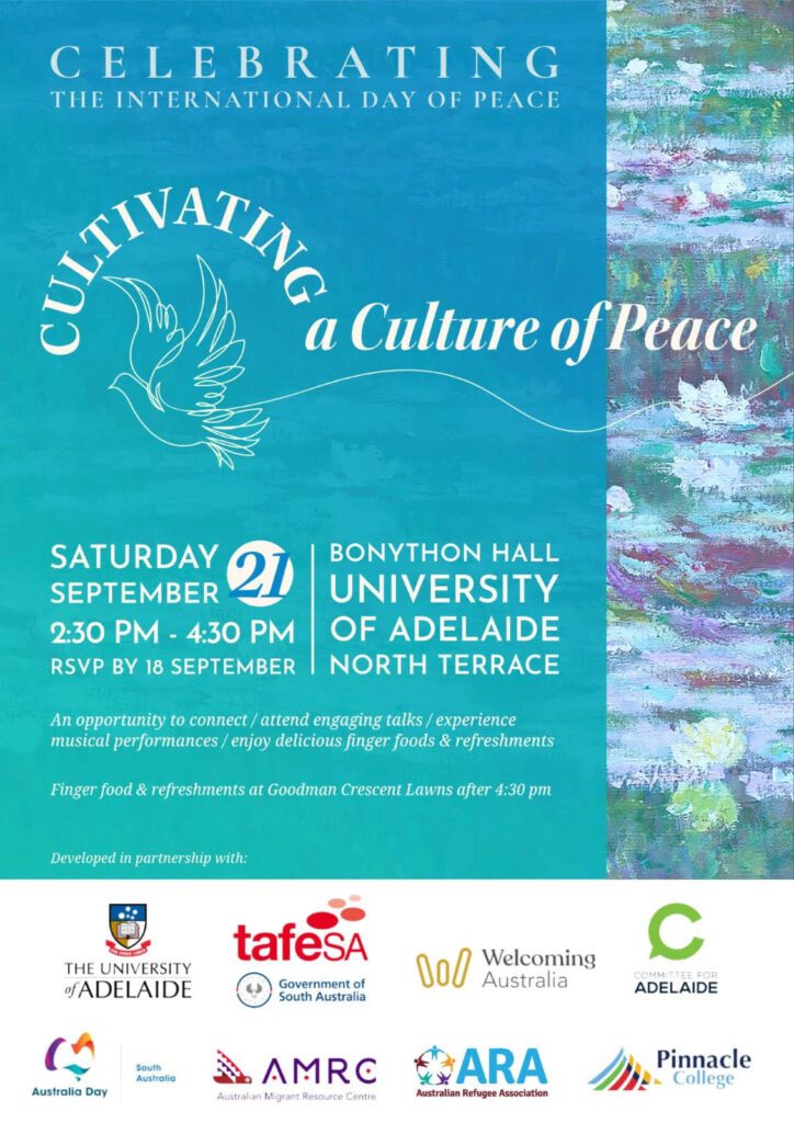 An opportunity to connect/attend engaging talks / experience musical performances/enjoy delicious finger foods & refreshments Celebrate the International Day of Peace at the University of Adelaide with a panel discussion […]